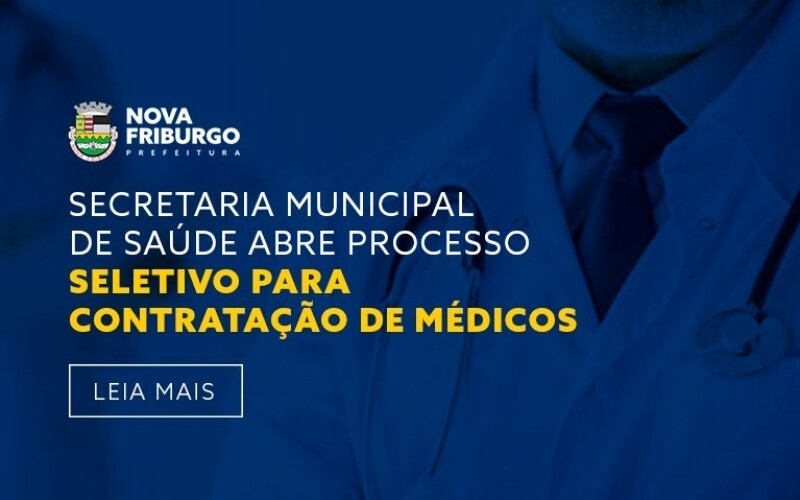 Na noite da última sexta-feira, 17, a Prefeitura de Nova Friburgo, através da Secretaria Municipal de Saúde, publicou no Diário Oficial Eletrônico do município mais um processo seletivo para a contratação de médicos, visando a formação de cadastro reserva para a contratação excepcional de profissionais que atuarão dentro da pasta.