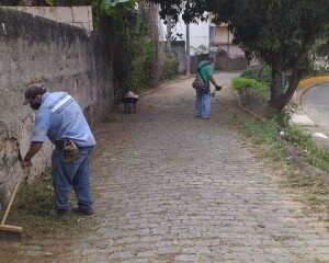 O trabalho de capina e limpeza foi executado também nas ruas Clarindo Rodrigues de Freitas e Albertino de Freitas Vasconcelos, ao lado da Igreja Nossa Senhora do Rosário.