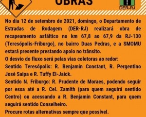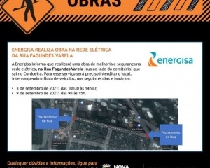 A Prefeitura de Nova Friburgo, através da Secretaria Municipal de Ordem e Mobilidade Urbana (Smomu), informa que a concessionária Energisa realizará uma intervenção na rede elétrica da Rua Fagundes Varela (rua ao lado do Cemitério São João Batista, que sai no Cordoeira).