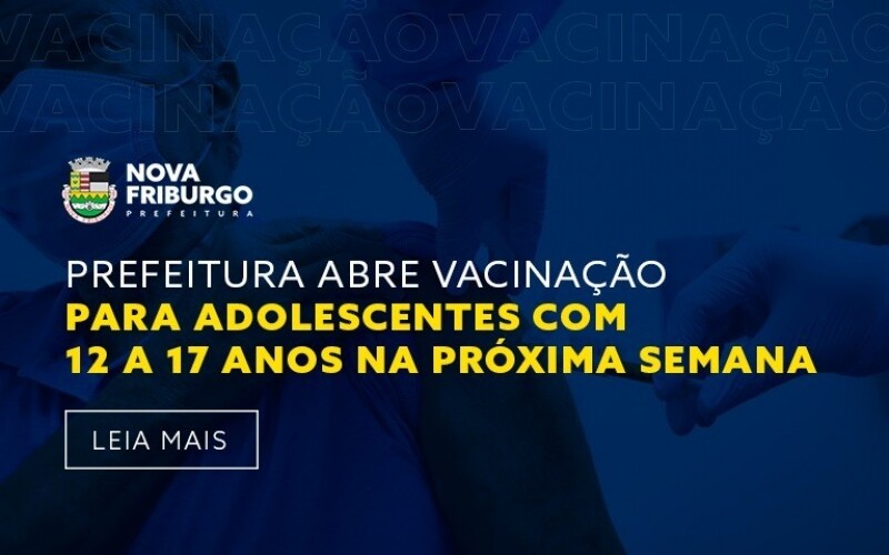 A Prefeitura, por meio da Secretaria Municipal de Saúde, realizará a vacinação dos adolescentes com 12 a 17 anos em Nova Friburgo, com aplicação do imunizante Pfizer, conforme foi deliberado pelo Ministério da Saúde e pelo Governo do Estado do Rio de Janeiro.