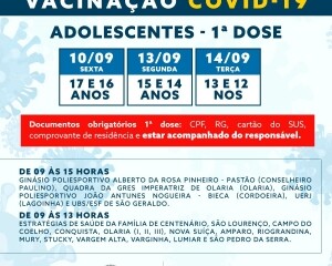 PREFEITURA ABRE VACINAÇÃO CONTRA COVID PARA ADOLESCENTES COM 12 A 17 ANOS