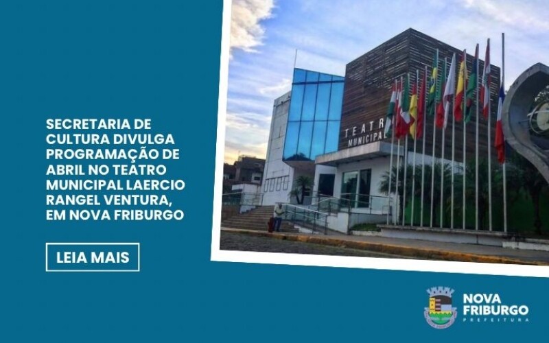 A Prefeitura de Nova Friburgo, através da Secretaria de Cultura, por meio do Teatro Municipal Laercio Rangel Ventura preparou uma programação imperdível para este mês de abril, com diversos espetáculos culturais.