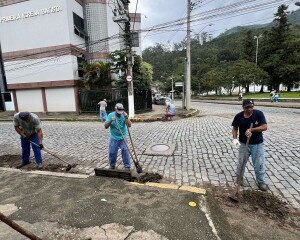 Na manhã desta sexta-feira, dia 4, equipes da Secretaria Executiva de Desenvolvimento Regional, de Infraestrutura e Obras e de Serviços e Equipamentos Públicos, com apoio da concessionária Águas de Nova Friburgo, realizaram a revisão e a manutenção das redes pluviais de Nova Friburgo.