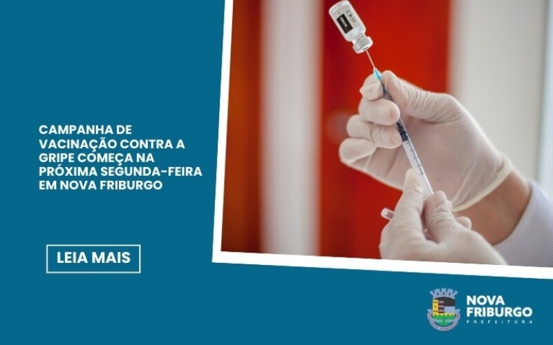A partir da próxima segunda-feira, 7, a Prefeitura de Nova Friburgo inicia a Campanha de Vacinação contra a Gripe. A ação tem como foco os grupos prioritários definidos pelo Ministério da Saúde e acontecerá de segunda a sexta-feira, das 8h às 16h, nas salas de vacinação das Unidades Básicas de Saúde (UBS) do município.