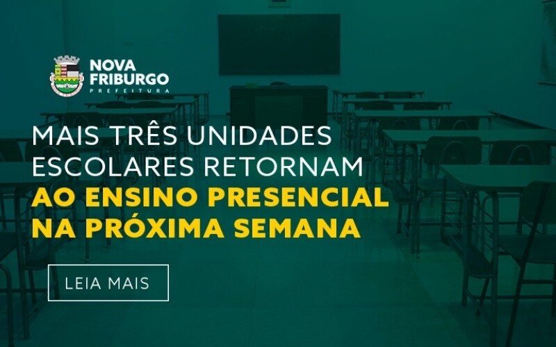 Na próxima semana retornam as escolas municipais Vargem Alta, na localidade do mesmo nome, e Lafayette Bravo Filho, em Conselheiro Paulino, além do Jardim de Infância Bela Vista, no bairro Bela Vista.
