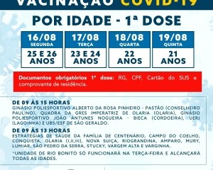 Na segunda-feira, 16, quem tem 26 e 25 anos receberá a primeira dose. Na terça, 17, é a vez de quem tem 24 e 23 anos. Na quarta, 18, a idade contemplada será os 22 anos, e na quinta, 19, os friburguenses com 21 anos receberão a vacina.