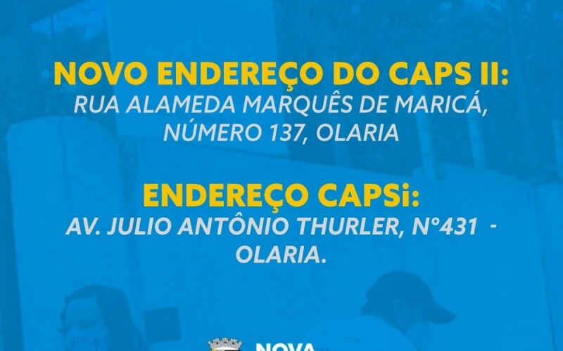 O Caps II irá funcionar onde hoje fica o Capsi, o infantil, na Alameda Marquês de Maricá, 137, no Parque São Clemente. Logo, a unidade que é responsável pelos atendimentos das crianças funcionará na Avenida Julio Antônio Thurler, 431, em Olaria, onde ficava o centro de atenção dos adultos, havendo assim, uma troca entre os endereços.