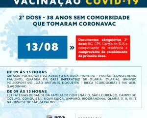 Já na sexta-feira, os estudantes de faculdade e cursos técnicos da área da saúde receberão a segunda dose, assim como, pessoas com 38 anos, sem comorbidades, que tomaram coronavac.