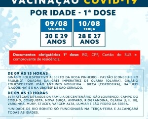Na segunda-feira, 9, é a vez de quem tem 30 e 29 anos receber a primeira aplicação. Na terça, 10, os públicos contemplados serão os friburguenses com 28 e 27 anos.
