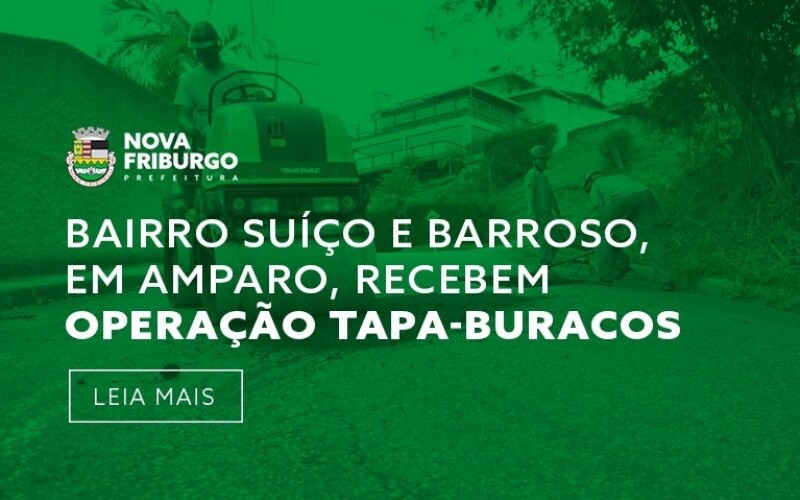 As ruas de Nova Friburgo continuam recebendo melhorias através da operação tapa-buracos. Nesta semana, os trabalhos estão sendo realizados em mais duas localidades do município: no Bairro Suíço e no Barroso, em Amparo. Na semana passada, a operação aconteceu em trechos da RJ-150, estrada de acesso ao distrito de Amparo.