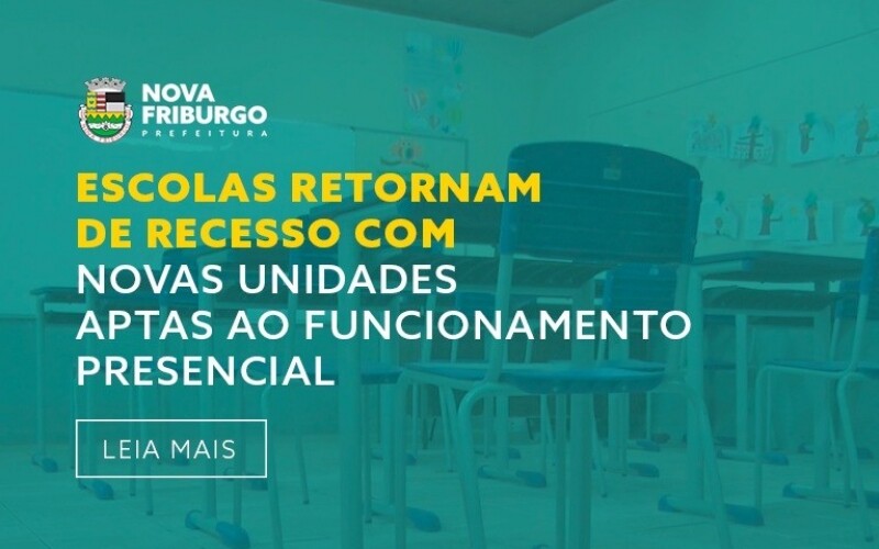 Após duas semanas de recesso escolar, as escolas municipais retornam às aulas, sejam elas remotas ou presenciais, e a Secretaria Municipal de Educação da Prefeitura de Nova Friburgo divulga as novas unidades aptas a recomeçarem as atividades nas instalações físicas, a partir da próxima semana. São elas: