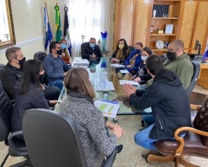 O encontro contou com o secretário de Assistência Social, Marcinho Alves, a secretária de Saúde, Nicole Cipriano, a subsecretária de Gestão do Ensino, Caroline Klein, o subsecretário de Comunicação Social, Daniel Figueira, e a equipe do Centro de Referência de Assistência Social (Creas).