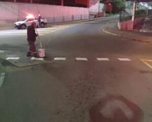 O trabalho teve continuidade nessa área com a revitalização da pintura das lombadas da Rua Romão Aguilera Campos, entre Olaria e Cônego. E a revitalização da sinalização de trânsito prosseguiu ao redor da Praça 1º de Maio, onde foram adequadas as placas, em concordância com a sinalização semafórica, proibindo os movimentos conflitantes com os focos de pedestres. Foi corrigido também o posicionamento de algumas placas, para que atendam ao principal quesito da sinalização, que é a garantia da percepção. Já foram revitalizadas diversas faixas de pedestres e esse trabalho prossegue nesta semana.