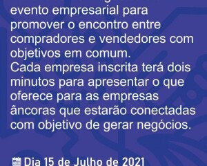 Empresas interessadas devem se apressar. As vagas são limitadas e as inscrições (via Sympla, através do endereço: https://www.sympla.com.br/rodada-de-negocios-virtual__1256545) se encerram nesta quarta-feira, 14.
