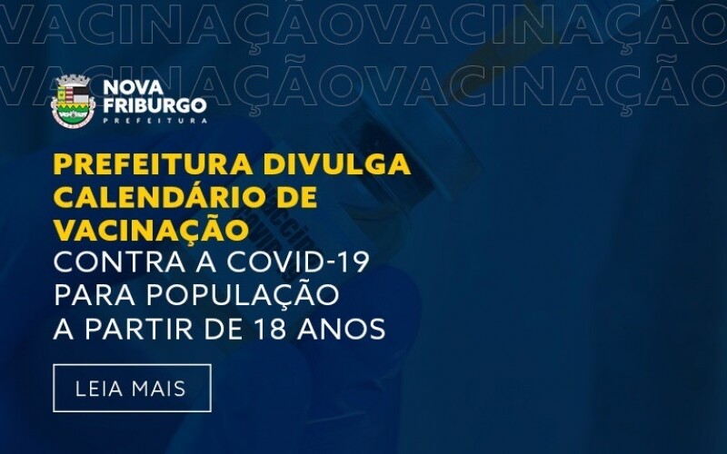 A Secretaria Municipal de Saúde, por meio da Subsecretaria de Atenção Básica, divulgou nesta terça-feira, 13, o calendário de vacinação contra a Covid-19 para toda a população de Nova Friburgo. A expectativa da Prefeitura é que até agosto toda a população com mais de 18 anos esteja vacinada em nosso município.