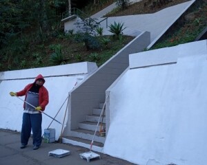 A Secretaria de Serviços Públicos também concluiu o trabalho no Escadão Dionízio Pinto da Silva, que liga os bairros Cordoeira e Ypu. O local foi totalmente recuperado no mês de junho, com limpeza, capina, roçada e recuperação paisagística dos canteiros. Na sexta-feira, dia 9 de julho, o serviço foi finalizado com a pintura de todo o espaço.