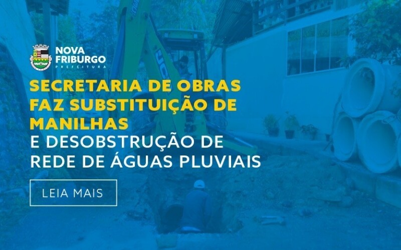 A Prefeitura de Nova Friburgo, através da Secretaria de Obras, realizou nos últimos dias intervenções em alguns bairros para substituição de manilhas e desobstrução de rede de águas pluviais. O trabalho, realizado pela equipe de manilhamentos, aconteceu em ruas do Centro, das Braunes, de Varginha, Chácara do Paraíso, Santa Luzia e Mury.
