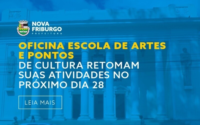 Reconhecida em todo estado como um grande celeiro de artistas, Nova Friburgo possui a primeira escola pública para ensino de Artes da Região Serrana. A oferta de vagas para os cursos gratuitos da Oficina Escola de Artes e Pontos de Cultura será retomada pela Prefeitura de Nova Friburgo, por meio da Secretaria de Cultura. O retorno após a paralisação provocada pela pandemia acontece em 28 de junho, inicialmente de forma on-line. As inscrições já estão abertas e podem ser feitas pela internet.