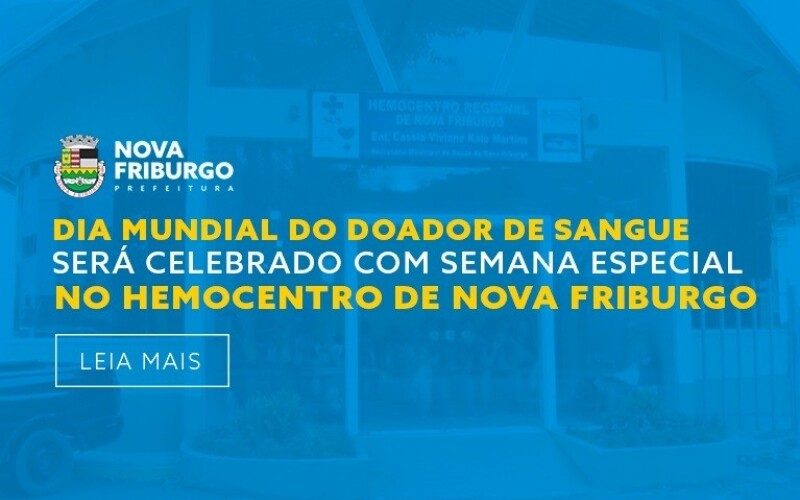 Nesta segunda-feira, 14 de junho, é celebrado o Dia Mundial do Doador de Sangue, data instituída em homenagem ao nascimento de Karl Landsteiner, imunologista austríaco que descobriu o fator Rh e as várias diferenças entre os tipos sanguíneos. E para marcar a passagem desta data tão importante, a Prefeitura de Nova Friburgo, através da Secretaria Municipal de Saúde, está preparando uma semana inteira dedicada à doação de sangue.