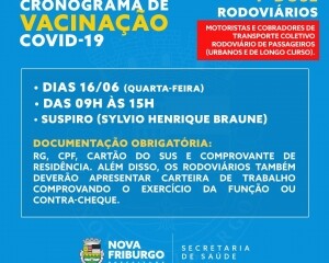 Para receber a vacina, será obrigatório apresentar: RG, CPF, Cartão do SUS e comprovante de residência. Além disso, os trabalhadores da Educação e rodoviários também deverão apresentar Carteira de Trabalho comprovando o exercício da função ou contra-cheque.