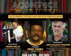 "Velocidade e técnica no esporte friburguense" será o tema da live do dia 24, segunda-feira, às 10h, abrindo a semana. Mediada pelo professor Tadeu, coordenador de educação física da rede municipal de ensino, o papo será com os convidados Mario Mello, praticante do futebol de amputados, e do professor José Augusto Teodoro, da Associação dos Corredores Friburguenses (Ascof).