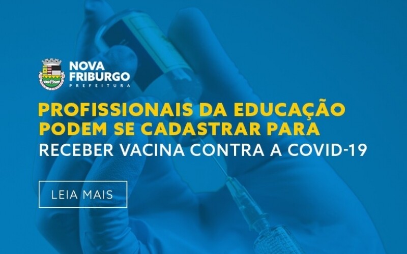 A Prefeitura de Nova Friburgo está elaborando o cadastramento dos profissionais das redes municipal e estadual de educação, escolas privadas e instituições de ensino superior públicas e privadas, com idade de até 59 anos, para receberem a vacinação contra a covid-19. Ainda sem data definida para ocorrer, é importante que o profissional acompanhe os canais oficiais do Executivo e da mídia local para atualização das informações, para quando, de fato, a data for definida e divulgada, a pessoa possa se dirigir ao posto de saúde indicado.