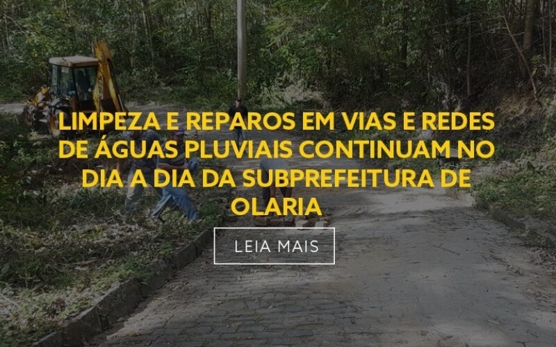 A subprefeitura de Olaria, Cônego e Cascatinha continua com o trabalho diário de manutenção dos logradouros dos muitos bairros da sua área de cobertura. O cronograma dos serviços de limpeza geral, reparos de vias e desobstrução de redes de águas pluviais são tratados entre o prefeito Johnny Maycon e o subprefeito Matiel Gonçalves.