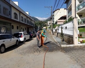 O serviço de manutenção das redes de águas pluviais se concentraram no Cônego, na Rua Marechal Rondon, com limpeza de bueiros, executado em parceria com a Secretaria de Serviços Públicos, que cedeu o caminhão sugador Vac All, e na Cascatinha, na rua de acesso ao Pico da Caledônia.