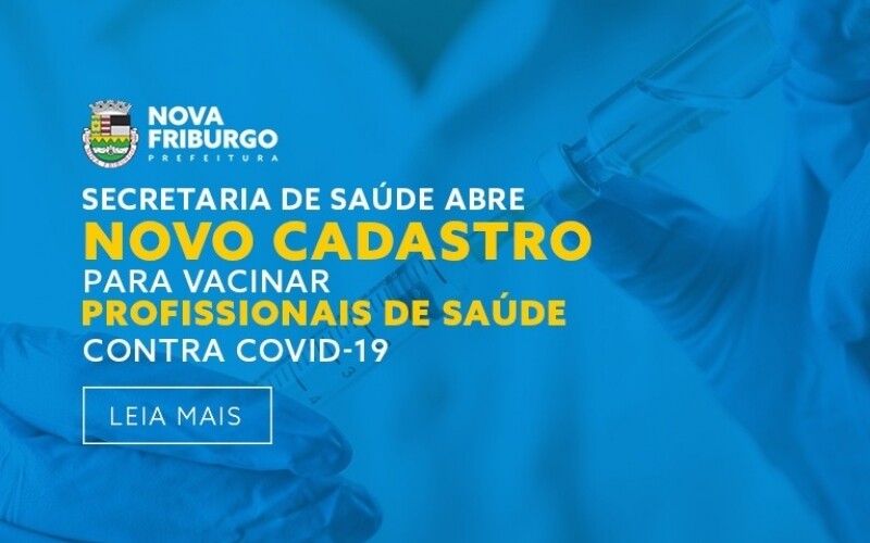 A Secretaria de Saúde de Nova Friburgo reabriu o cadastramento online dos profissionais de saúde que ainda não foram imunizados. O formulário estará disponível entre os dias 10 e 14 de maio no site da Prefeitura de Nova Friburgo (www.novafriburgo.rj.gov.br). O objetivo do cadastro é gerar informações que possam auxiliar no planejamento do cronograma de vacinação deste grupo prioritário, de acordo com o número de doses que o município for recebendo para o atendimento deste grupo.