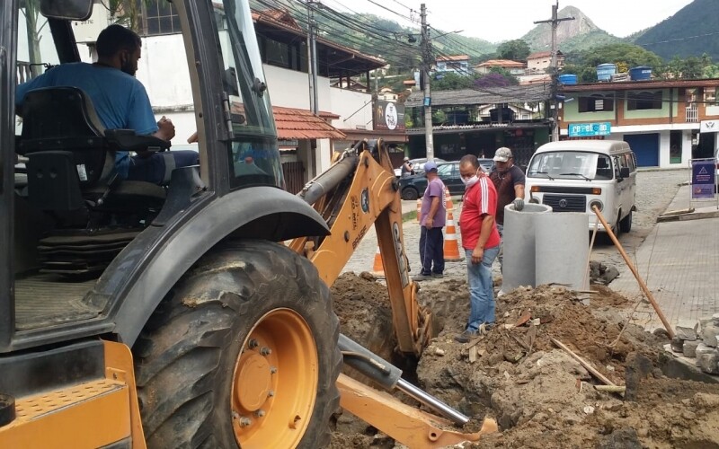 As redes de águas pluviais têm tido atenção especial devido às fortes chuvas desta época do ano. Numa parceria com a concessionária Águas de Nova Friburgo, que cedeu uma máquina retroescavadeira, foi iniciada a troca de manilhas na Rua Manoel José da Cunha, em frente ao Mercado Frotté, no Cônego. Inicialmente a previsão era substituir três manilhas, e no entanto, já são 11. Porém, o subprefeito garante que está sendo realizado um trabalho perfeito. A previsão de Matiel é terminar o serviço nesta segunda-feira, dia 22, sempre contando com a parceria da Águas de Nova Friburgo, a cuja equipe ele faz um agradecimento especial.