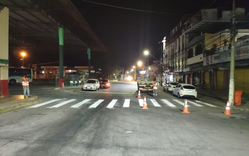 Na noite de quarta-feira, dia 3, a equipe de Sinalização da Secretaria de Ordem e Mobilidade Urbana esteve no bairro Duas Pedras para revitalizar as faixas de pedestres e fazer a marcação correta dos pontos de parada no entorno da Rodoviária Norte. A ação visa trazer segurança aos passageiros e moradores que circulam diariamente no entorno deste local.