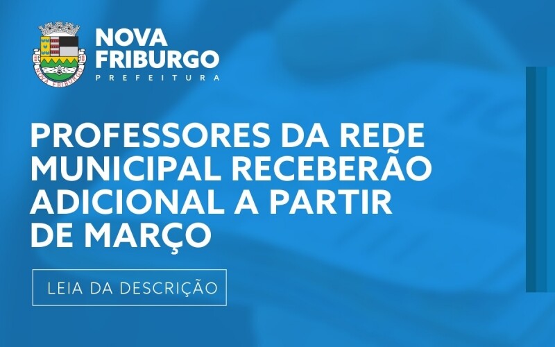 PROFESSORES DA REDE MUNICIPAL RECEBERÃO ADICIONAL A PARTIR DE MARÇO