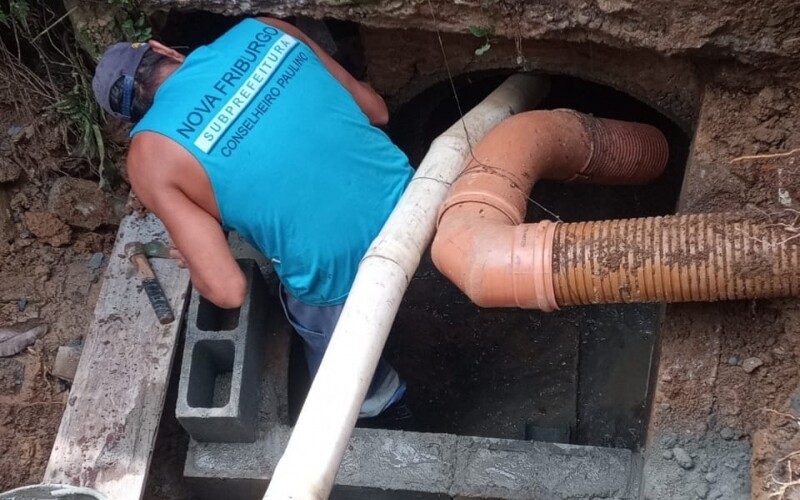 Subprefeitura de Conselheiro Paulino trabalha na limpeza de ruas e redes de águas pluviais