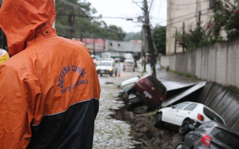 Na tarde do último sábado, 6, um acidente na Vila Amélia mobilizou equipes da Prefeitura para atuarem no local afetado pela queda da cobertura de parte da galeria do Córrego do Relógio. Conforme avaliação da Defesa Civil Municipal, o acidente ocorreu devido ao rompimento do muro de contenção, possivelmente provocado pelo alto fluxo de água. Em 48h, foram registrados 71mm de chuvas em Nova Friburgo, conforme registro na estação Caledônia do Cemaden.