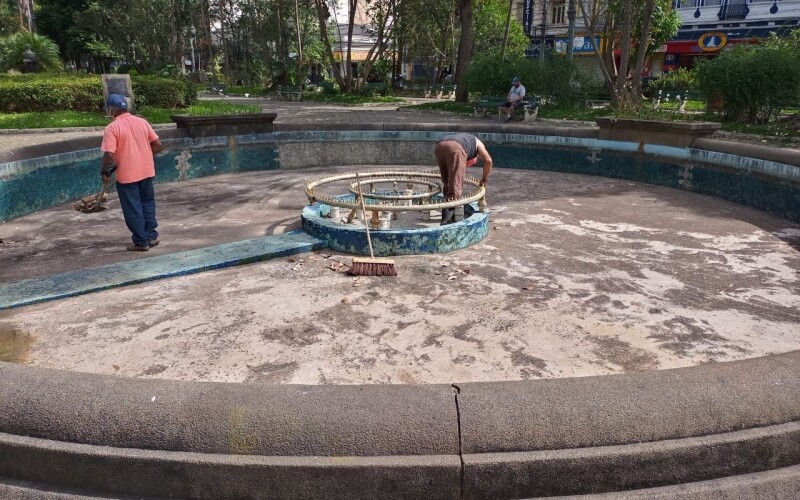 O trabalho de limpeza urbana em Nova Friburgo não para. No último final de semana, uma equipe da Secretaria de Serviços Públicos esteve de plantão para garantir a continuidade das ações da Prefeitura no centro da cidade. O prédio do antigo Fórum, o chafariz da Praça Getúlio Vargas e o Centro de Turismo foram limpos e os bueiros nas ruas ao entorno receberam revisão.