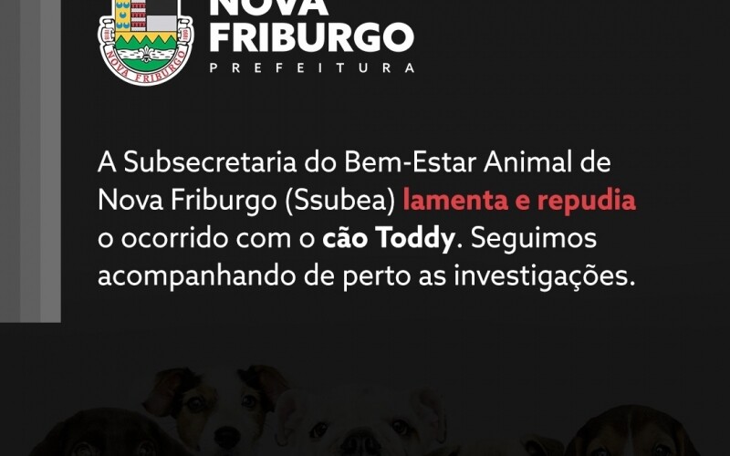 A Subsecretaria de bem estar animal, subordinada à Secretaria Municipal do Meio Ambiente e toda a gestão municipal, está consternada com o desfecho do caso do cão da raça husky siberiano Toddy, bem como com a descoberta da existência de um sítio macabro, que servia de matadouro de diversas espécies de animais em Cardinot, o que repudiamos veemente. Nos solidarizamos com os tutores do Toddy e seguimos acompanhando o caso desde o seu desaparecimento e observando de perto as investigações do inquérito.