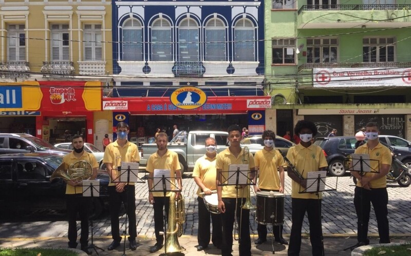 Coube à Euterpe Friburguense realizar o “Abraço Musical” e alegrar profissionais de saúde, pacientes e familiares em hospitais, entidades assistenciais e outros locais pela cidade. O regente Nelson José da Silva Neto - que também atuou na percussão - e mais sete músicos com seus instrumentos iniciaram as apresentações com músicas natalinas em frente à sede da “Centenária das Centenárias”, no Centro, e passaram pela Casa dos Pobres São Vicente de Paulo, também no Centro; Lar Abrigo Amor a Jesus (Laje), na Lagoinha; Condomínio Bom Pastor, na Vila Amélia; Paróquia Sant’Ana e São Joaquim, no bairro Cônego; e, de volta ao Centro, na Praça Getúlio Vargas.