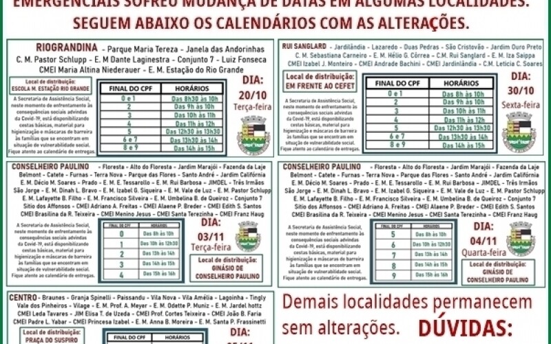 Alteração no cronograma de distribuição de cestas básicas emergenciais