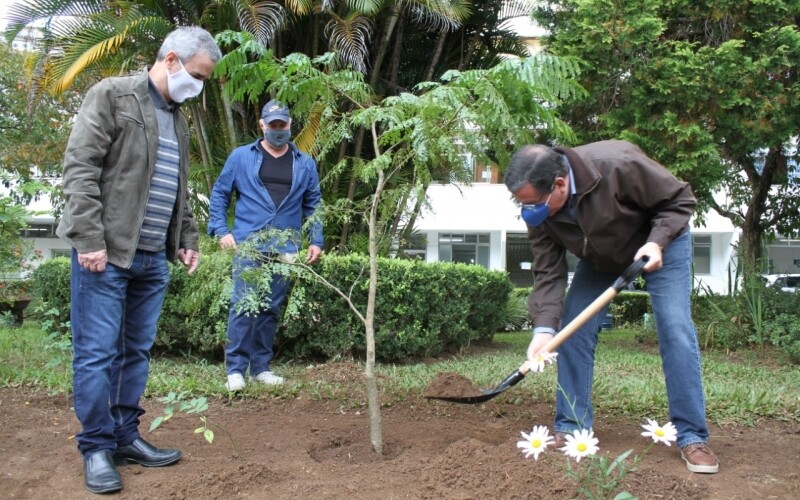 Em ato simbolizando a preservação, na data em que comemoramos o Dia Mundial do Meio Ambiente, o Prefeito de Nova Friburgo, Renato Bravo, realizou o plantio de uma muda de Sibipiruna, no pátio da prefeitura na manhã desta sexta-feira, 05.