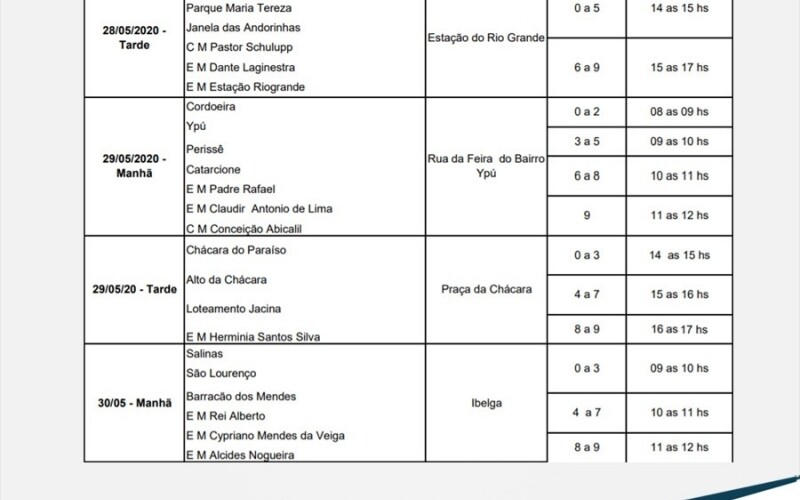 Para a próxima semana, um novo calendário foi divulgado, com distribuição marcada para o Ginásio de Conselheiro, Estação do Rio Grande, Cefet, Rua da Feira no bairro Ypu, Praça da Chácara e no Ibelga. Porém é preciso ficar atento as datas correspondentes, nos horários definidos de acordo o número final do NIS.