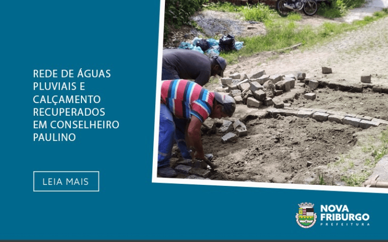 A Rua Cezenando Salarini, no distrito de Conselheiro Paulino, teve recuperada a rede de águas pluviais e o calçamento pela subprefeitura local, que é integrante da Secretaria Executiva de Desenvolvimento Regional da Prefeitura de Nova Friburgo. A ação foi realizada na quarta-feira, 5, pela equipe de calceteiros da pasta. O serviço teve início da manhã e foi concluído no final da tarde do mesmo dia.