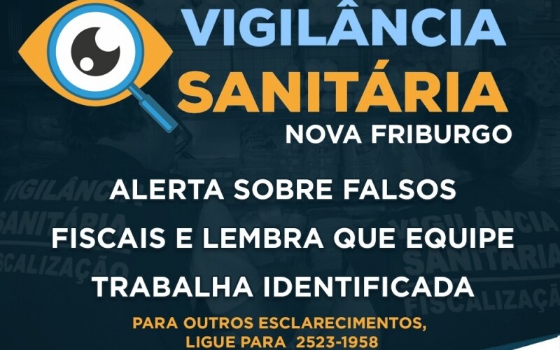 A Vigilância Sanitária da Prefeitura de Nova Friburgo alerta os comerciantes da cidade para o cuidado com falsos fiscais. As equipes do órgão municipal trabalham uniformizadas, com roupas e crachás contendo o brasão do município e nome em letra legível. A identificação está presente também nos documentos emitidos e veículos oficiais utilizados nas visitas.