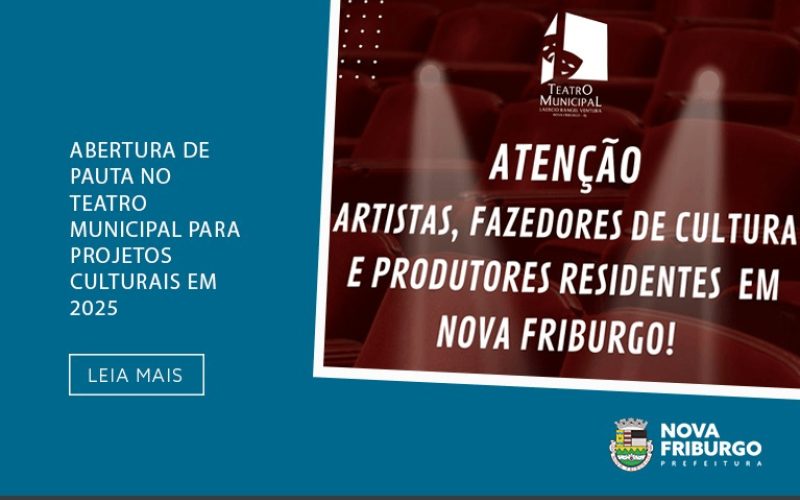 A Prefeitura Municipal de Nova Friburgo, por meio da Secretaria de Cultura, está oferecendo uma excelente oportunidade para artistas e produtores culturais residentes em Nova Friburgo que desejam realizar projetos em 2025 no Teatro Municipal Laercio Rangel Ventura. A pauta do equipamento cultural para artistas da cidade é um passo importante para valorizar as manifestações culturais locais, permitindo que bailarinos, músicos, atores e outros criadores tenham um espaço para se apresentar.