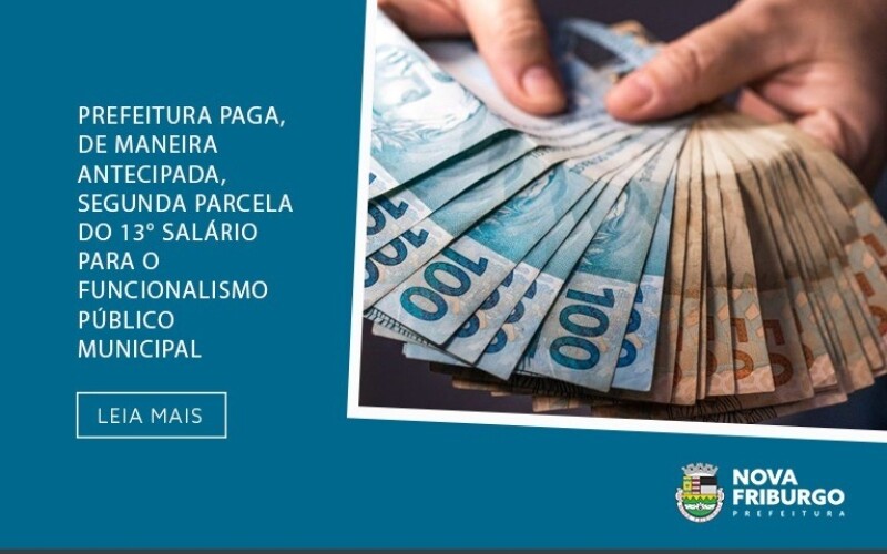 A prefeitura de Nova Friburgo realizou o pagamento, de maneira antecipada, da segunda parcela do 13° salário para todos os servidores e aposentados do funcionalismo público municipal.