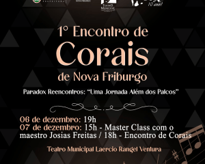A Prefeitura de Nova Friburgo, por meio da Secretaria de Cultura, irá promover, nos dias 06 e 07 de dezembro, o 1° Encontro de Corais de Nova Friburgo, Paradox Reencontros: “uma jornada além dos palcos”, no Teatro Municipal Laercio Rangel Ventura. O vigor da juventude mesclado à experiência do maestro João Cláudio Daumas Lassarotte pautam e dão a sintonia para este trabalho.