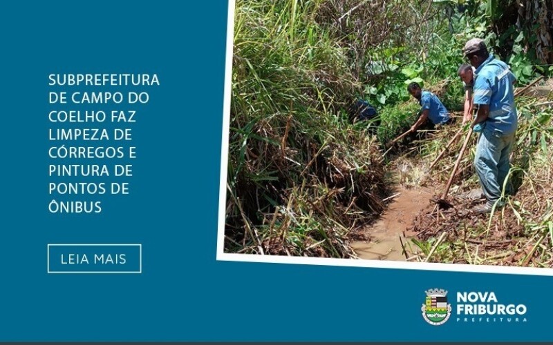 A Prefeitura de Nova Friburgo, através da Subprefeitura de Campo do Coelho, segue com trabalho intenso em toda a grande área do 3º distrito. Equipes estão sendo mobilizadas pelo subprefeito Amarílio Salarini para a desobstrução de dois córregos e para a pintura dos pontos de ônibus.