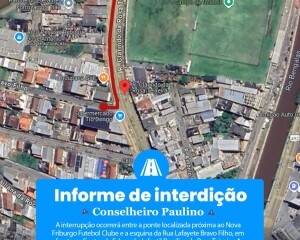 A Secretaria de Obras de Nova Friburgo iniciou intervenções de drenagem no distrito de Conselheiro Paulino, abrangendo o trajeto entre os bairros Jardim Califórnia e Prado. Para o avanço dos serviços, a Secretaria de Ordem e Mobilidade Urbana fará a interdição de um trecho da Rua Clarindo da Rosa Teixeira. A interrupção ocorrerá entre a ponte localizada próxima ao Nova Friburgo Futebol Clube e a esquina da Rua Lafayete Bravo Filho, em frente ao Centro de Educação Infantil Brasilina da Rosa Teixeira.