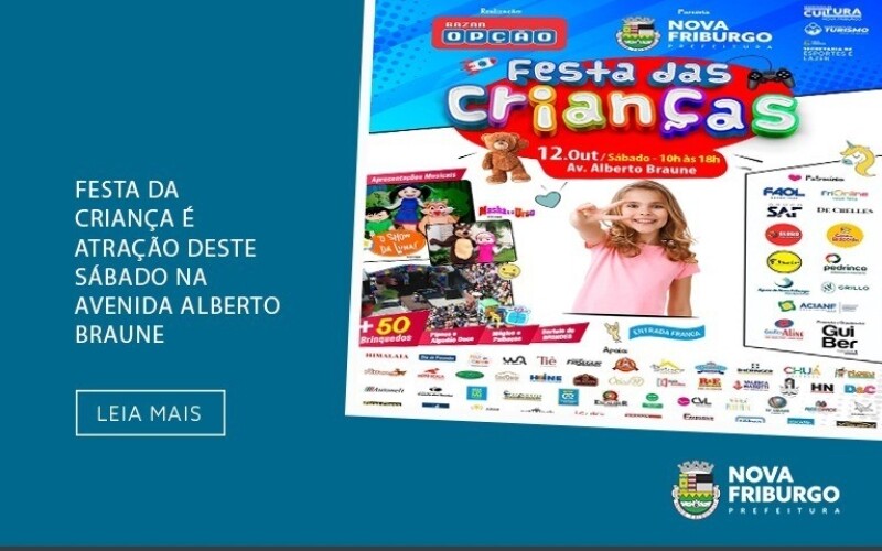 A “Festa da Criança” é realizada pelo Bazar Opção e conta com a parceria da Prefeitura de Nova Friburgo, por meio das secretarias municipais de Cultura, Turismo, Esportes e Lazer, Saúde, e Ordem e Mobilidade Urbana. A estrutura deste ano contará com palco, som, gradis, tendas e banheiros químicos, além de um posto médico e fraldário.