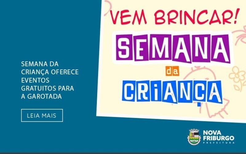 A Secretaria de Cultura de Nova Friburgo, em parceria com o Instituto Energisa e com o apoio da Concessionária Rota 116, apresenta a Semana da Criança, que contará com uma série de espetáculos gratuitos para o público infantil, entre os dias 9 e 12 de outubro, na Usina Cultural Energisa.