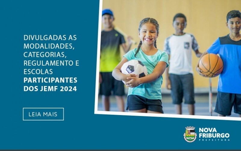 A Prefeitura de Nova Friburgo, através das secretariais de Educação e de Esportes e Lazer, divulga o Conselho Técnico dos Jogos Escolares Municipais Friburguenses (Jemf) 2024. O documento elenca as 18 escolas participantes, lista as modalidades e categorias que estarão em disputa, além de apresentar os principais pontos do regulamento da competição.
